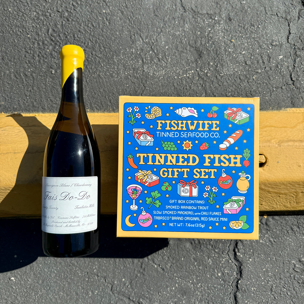 Inside each set you will find two Fishwife favorites: Smoked Mackerel with Chili Flakes and Smoked Rainbow Trout plus a mini bottle of Tabasco + double sided recipe card :)